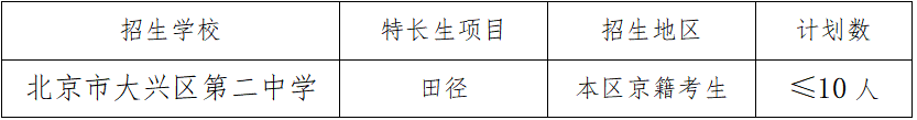 2、获得体育特长生招生资格的考生在填报志愿时须在统一招生第一志愿第一专业栏内填报“北京市大兴区第二中学”。