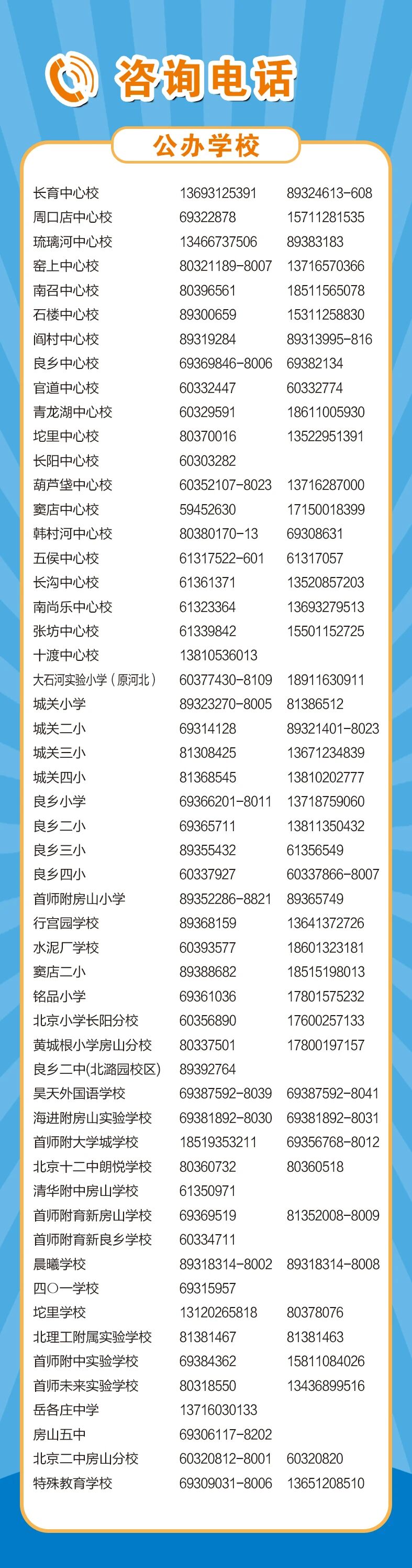 2026年房山区各公办小学、初中校咨询电话公布!2026年房山小升初家长查看!